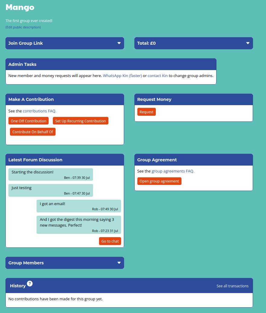 - Contributions are made directly to Kin Cooperative, which holds the money on behalf of your group.